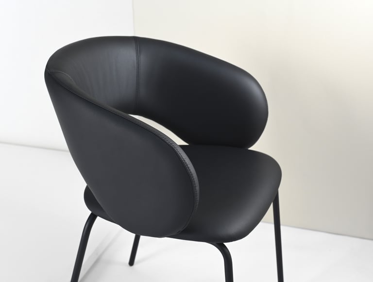 - upholstery customization through combination of different leathers or fabrics on the single chair, application of buttons, studs or stitching