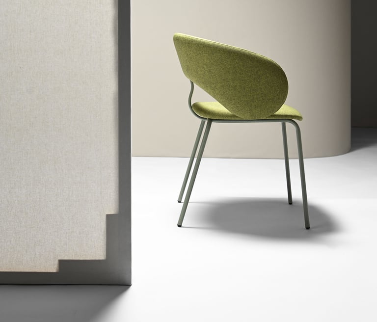 An enveloping backrest like a hug. With harmonious shapes, this collection expresses a handcrafted footprint, remarkable details to customize and get a strong, unique identity. The generous upholstery enhances the essence of the fabric, while the version with wooden backrest highlights the sinuous curves.