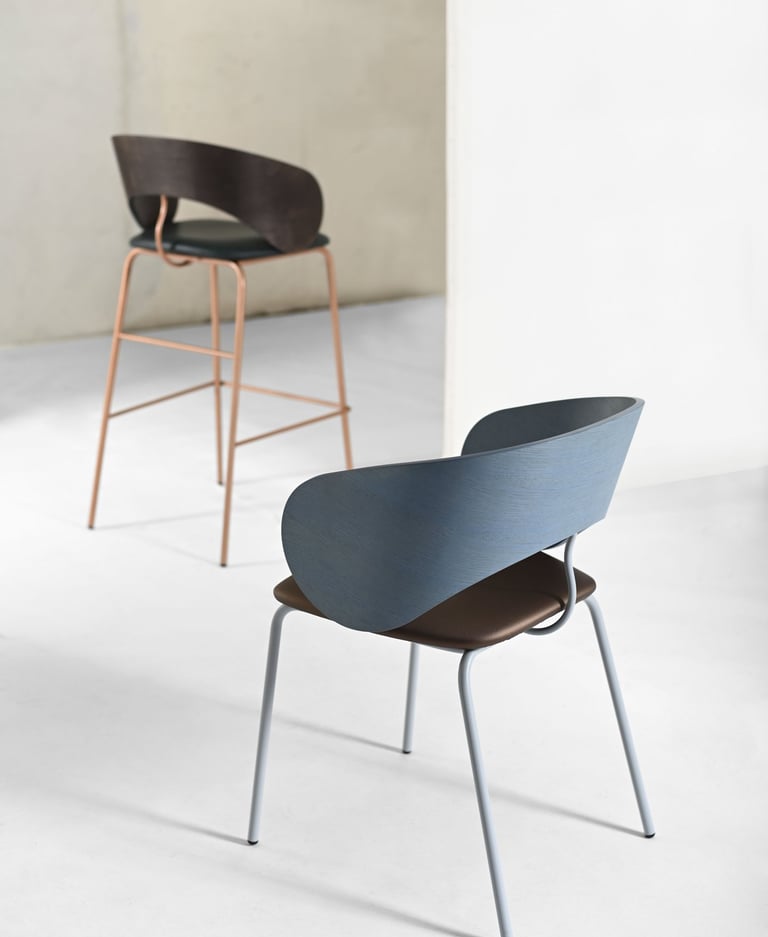 Upholstered plywood seat and backrest. Backrest available in ash plywood
