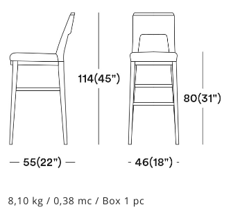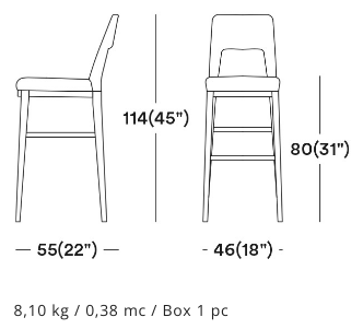 The wide opening on the back is the feature that makes this barstool is functional and easy to handle. This stunning upholstered piece is characterised by simple but sophisticated design. The wooden base and legs enrich this collection. The huge offer of fabrics and wood stains will make it a perfect product for every venue.