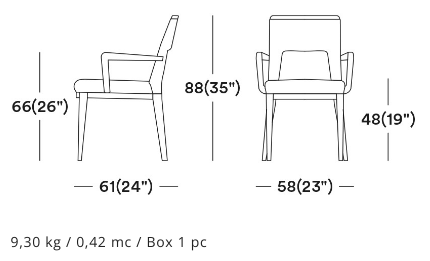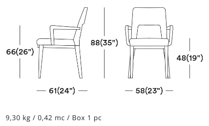The wide opening on the back is the feature that makes this armchair functional and easy to handle. This stunning upholstered chair is characterised by simple but sophisticated design. The wooden base and legs enrich this collection. The huge offer of fabrics and wood stains will make this product a perfect piece for every venue.