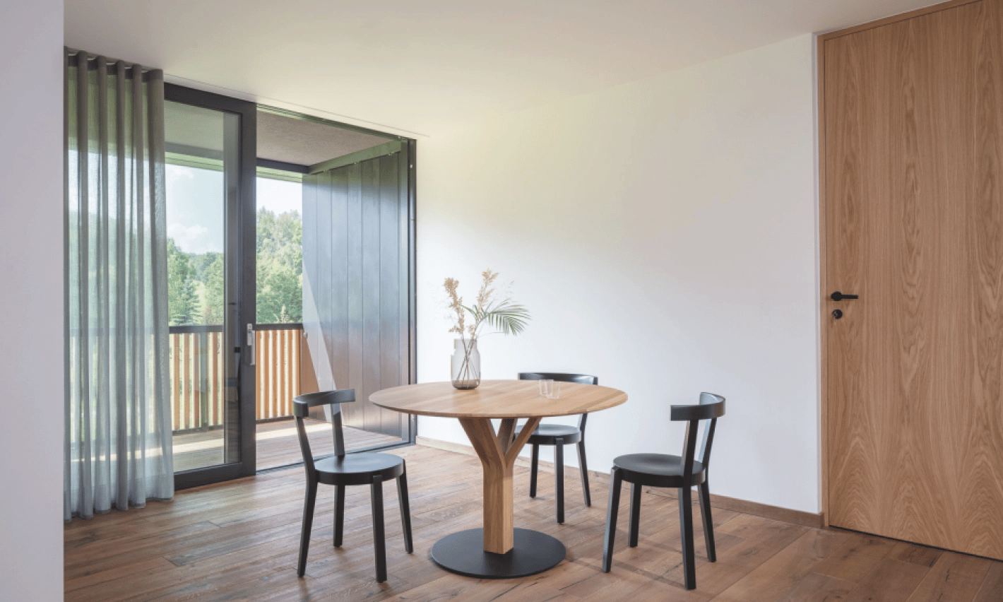 Arik Levy designed this table with its unique, flower-like wooden pedestal – a completely unconventional idea that will instantly catch your eye. Levy used four pieces of wood that branch outwards, like a flower in bloom. This table is a good match for the Split collection, as it is designed on a similar principle.