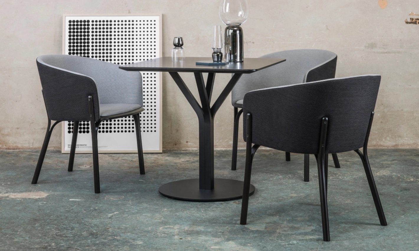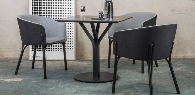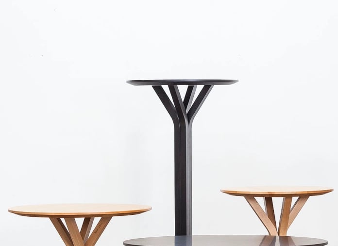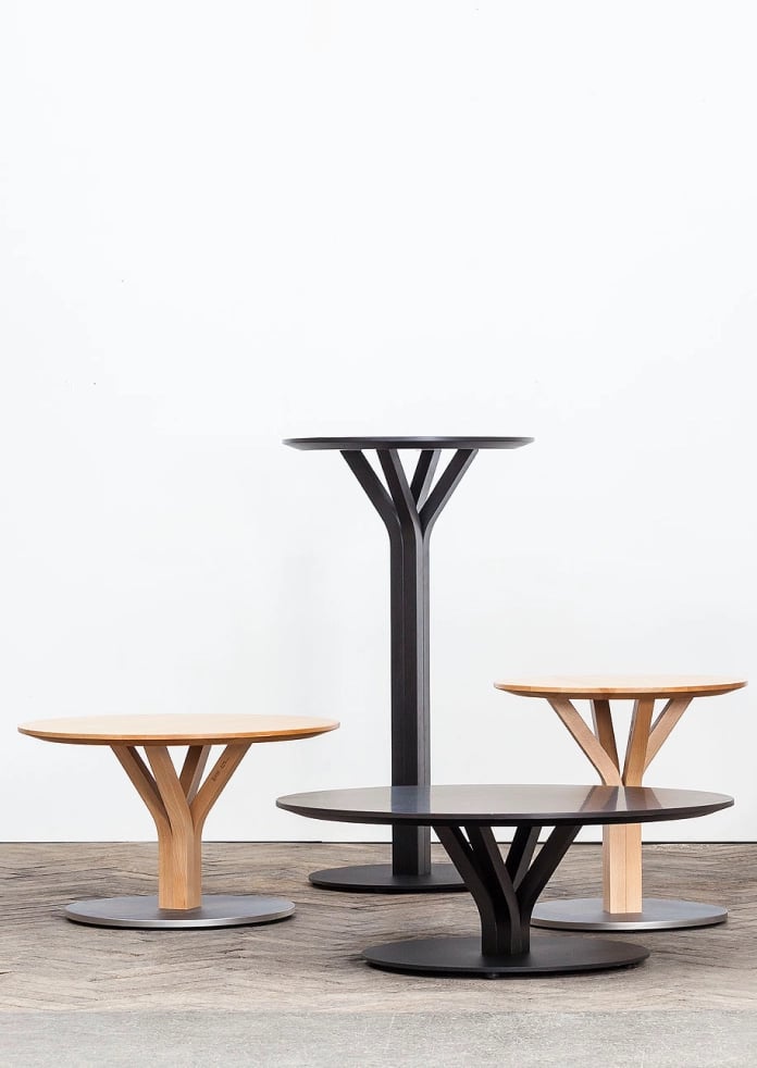 Arik Levy designed this table with its unique, flower-like wooden pedestal – a completely unconventional idea that will instantly catch your eye. Levy used four pieces of wood that branch outwards, like a flower in bloom. This table is a good match for the Split collection, as it is designed on a similar principle.