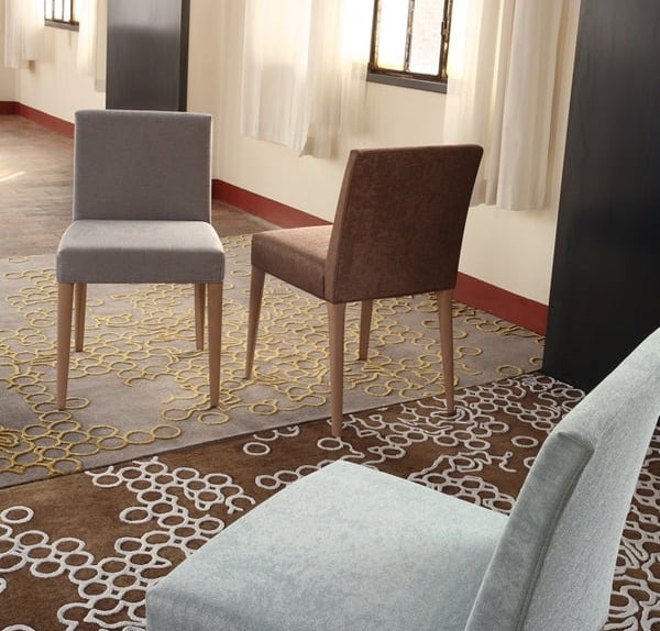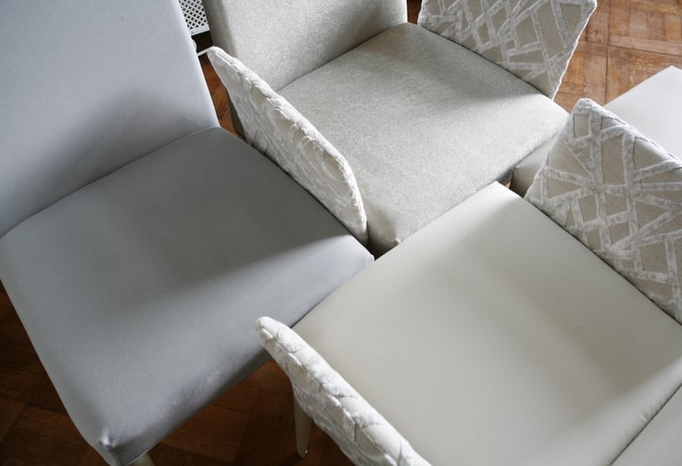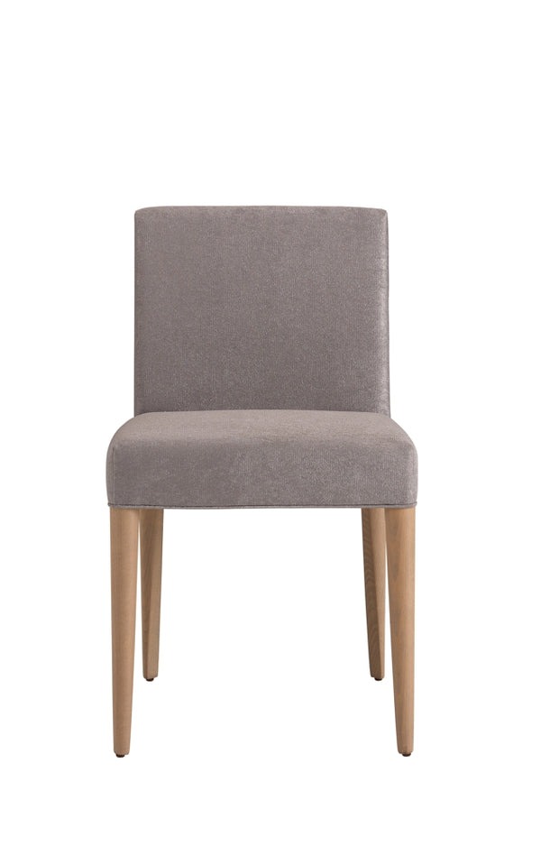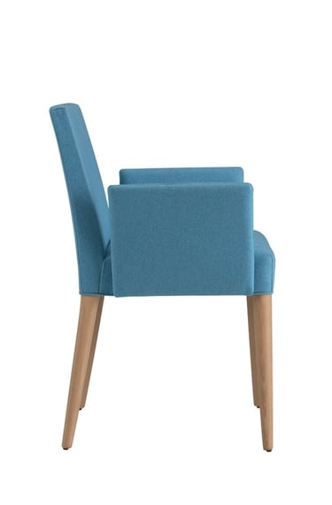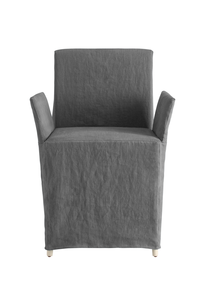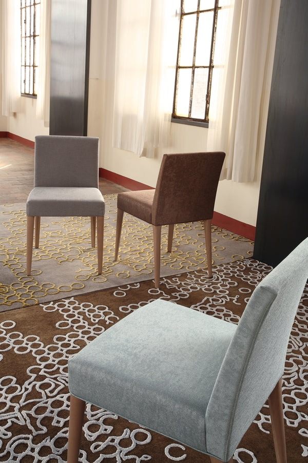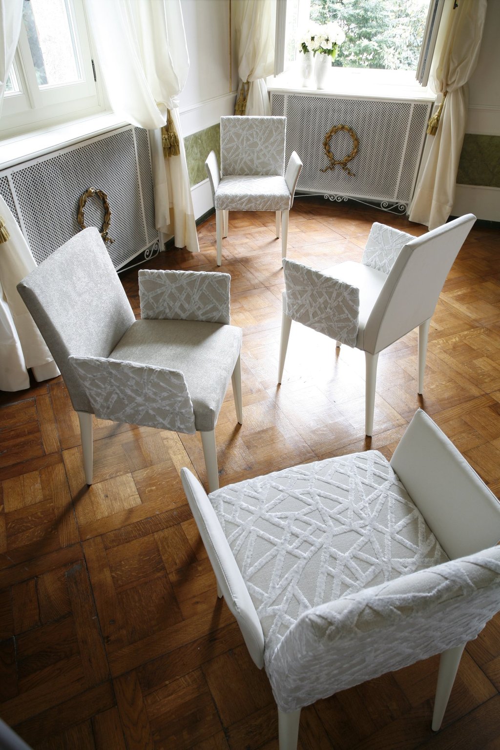 Sea set seat with exposed thickness, padded with leather and fabrics. Padded backrest. The footrest is made up of aligned elements and equipped with a wood-protector in stainless steel.