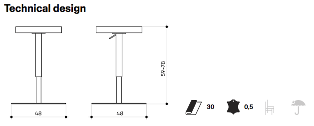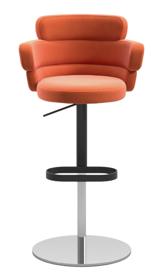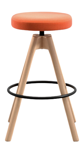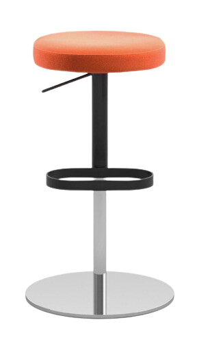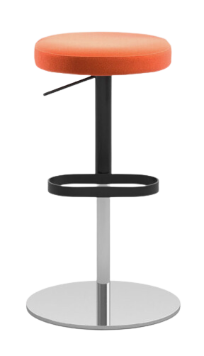 Swivel and height adjustable stool. Diam.45 brushed steel base with chromed or painted footrest. Available also monochrome base. Beech plywood seat upholstered with flame-retardant polyurethane foam.