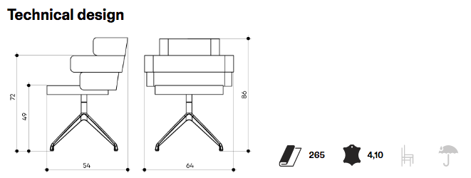 Small swivel armchair with 4 ways polished or painted aluminium frame and upholstered seat and tall backrest with flame-retardant polyurethane foam.