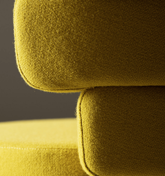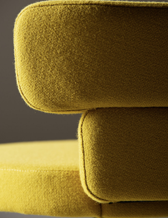 Upholstered armchair with plywood structure and flame-retardant foams and coverings.
