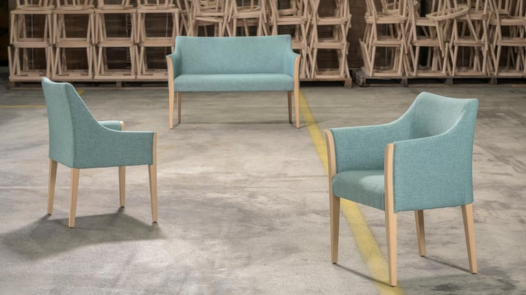 Coventry is a range including various types of furniture: two different armchairs and a two-seat sofa. The elegant style and clear-cut lines make Coventry a stylish range for large spaces such as restaurants and hotel halls. Coventry is available in many finishes, it can be customised to a high degree. The solid beech wood frame is sturdy and long lasting.