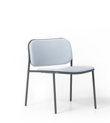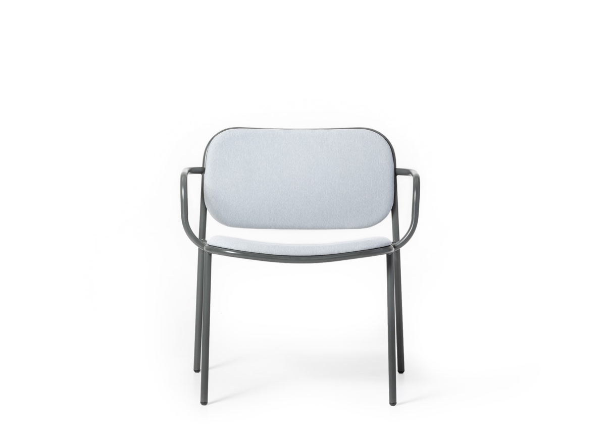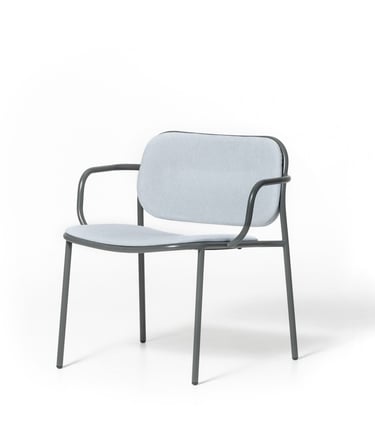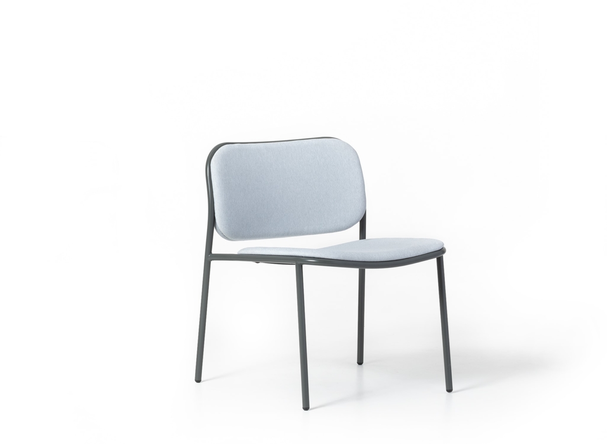 Lounge chair with painted metal structure, upholstered seat and back. With customisable upholstery options for seats and backrests, Denver brings coordination to different interior spaces, while ensuring every room has its own personality and textures.