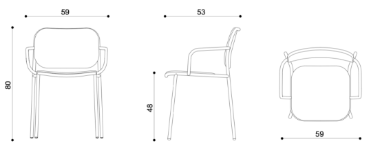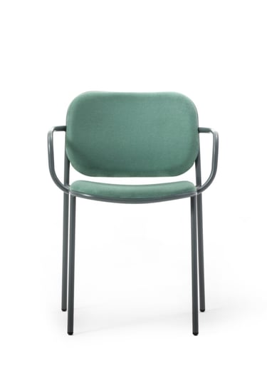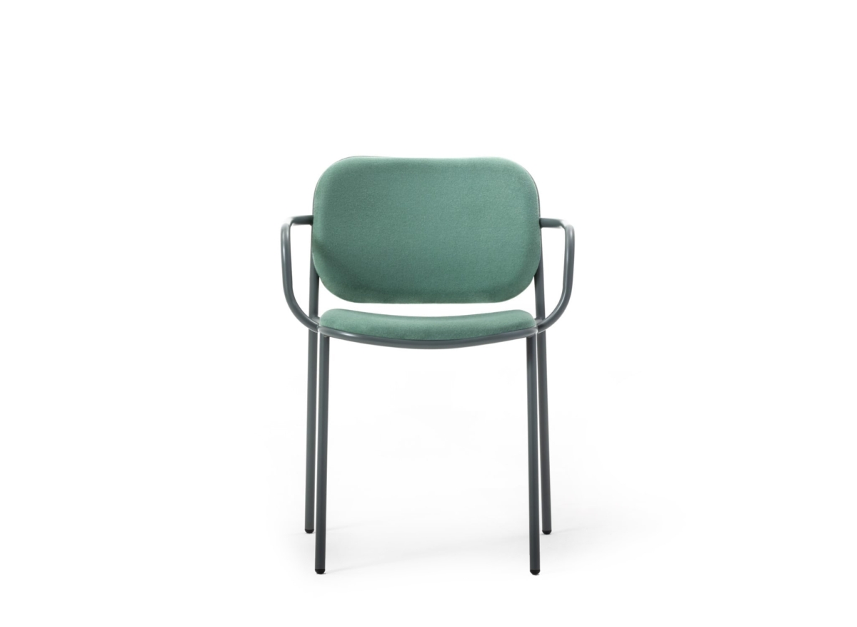 Chair with structure and armrests in painted metal, upholstered seat and back. With customisable upholstery options for seats and backrests, Denver brings coordination to different interior spaces, while ensuring every room has its own personality and textures.