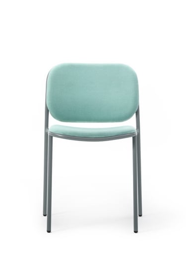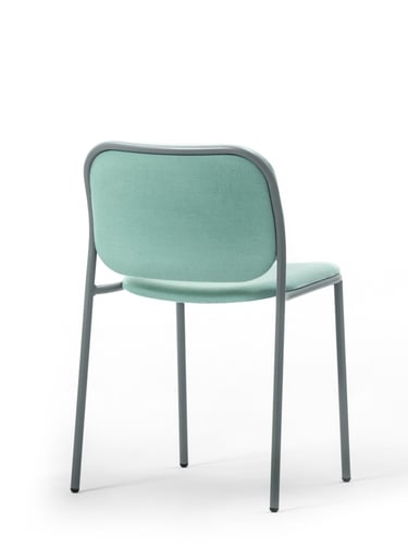 Chair with painted metal structure, upholstered seat and back. With customisable upholstery options for seats and backrests, Denver brings coordination to different interior spaces, while ensuring every room has its own personality and textures.
