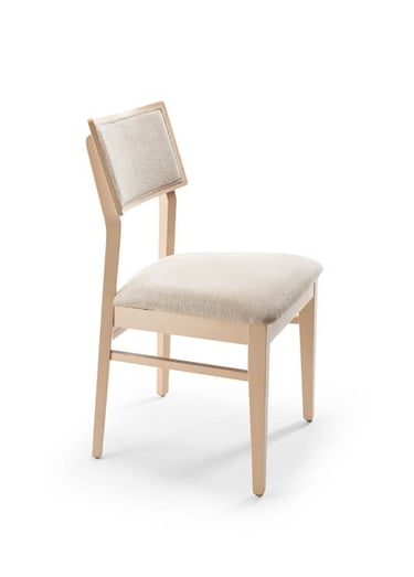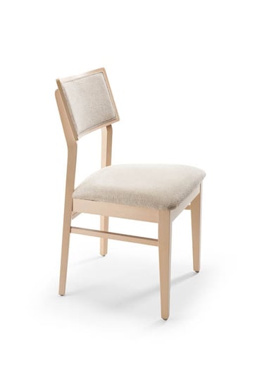 Derby is available with a wooden or a padded and upholstered back in fabric or faux leather. Simultaneously light and robust, Derby is perfect for small venues thanks to its compact dimensions and its simple style. The frame is made of solid beech wood.