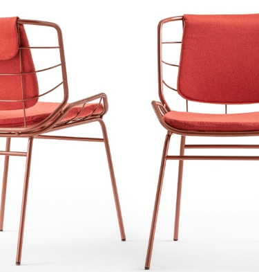 Subtle and understand upholstered & metal-wood Design Collection available with a broad selection of base options.