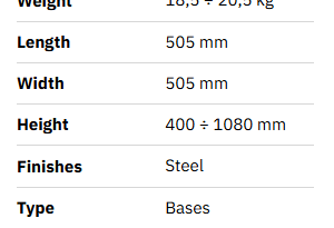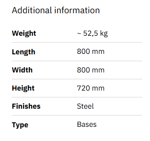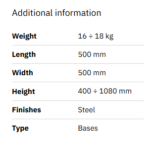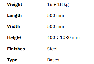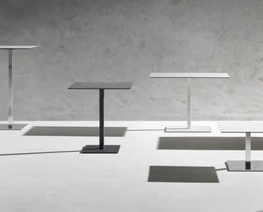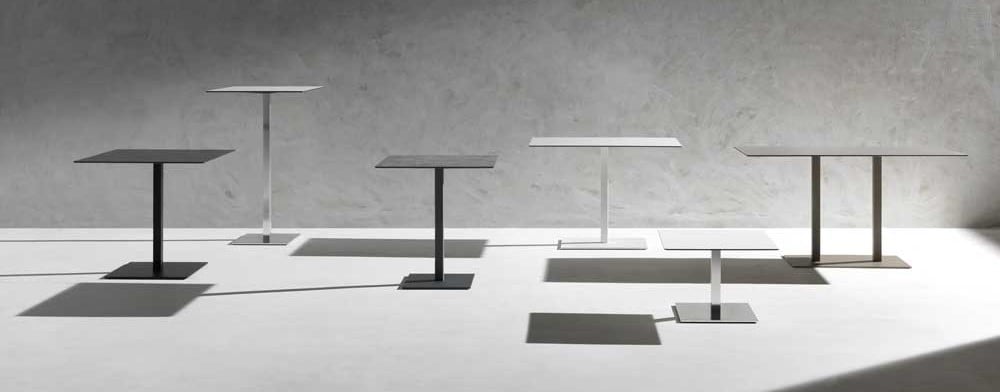 The Diego 500BQ base, characterized by the slim column and the flat base, was created to conform to a new contemporary minimal style. The 500BQ base with square base and square column is available in 3 standard heights and can be combined with tops in different sizes.