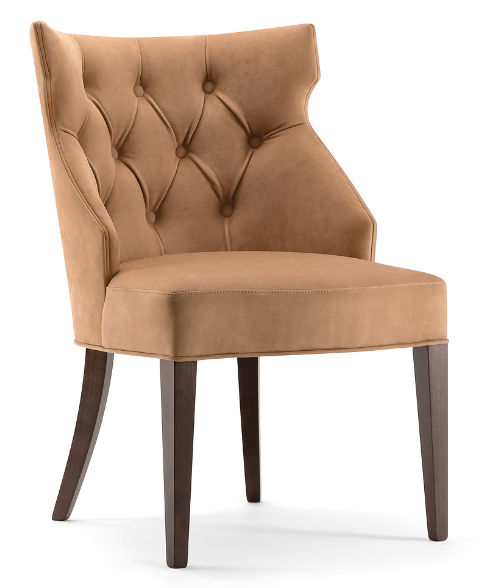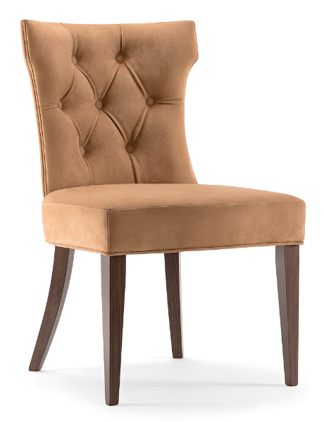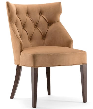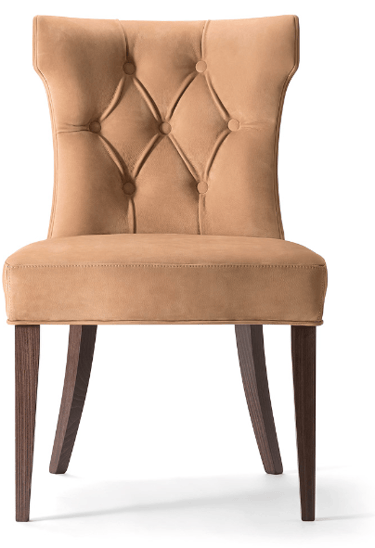 Bring a flavor of past elegance to modern spaces thanks to the wealth of design and craftmanship in this line. The Etincelle collection of chairs features deep buttoning and optional trim edging in pipe or studding. The solid wooden legs complete this elegant chair. This model is available with or without deep bottomed back. Thanks to the wide selection of thigh quality fabrics and wood stains this product is highly customizable.