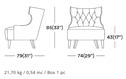 Bring a flavor of past elegance to modern spaces thanks to the wealth of design and craftmanship in this line. The Etincelle collection of chairs features deep buttoning and optional trim edging in pipe or studding. The solid wooden legs complete this elegant lounge chair. This model is available with or without deep bottomed back. Thanks to the wide selection of thigh quality fabrics and wood stains this product is highly customizable.