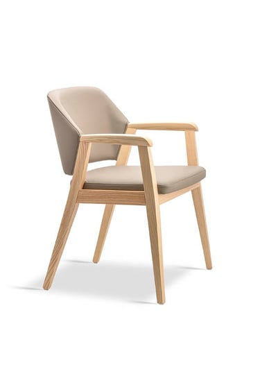 Made of ash wood, Greta is a comfortable and elegant armchair. The large upholstered back give sturdiness and create dynamism and vitality, while the shape of the seat offers maximum sitting comfort. The back and the seat can be upholstered with two different fabrics or faux leathers, making this armchairs very customizable. Greta is available as armchair and it can be upholstered with different fabrics, faux leather and real leather.