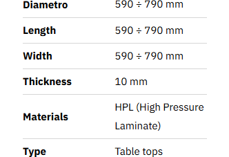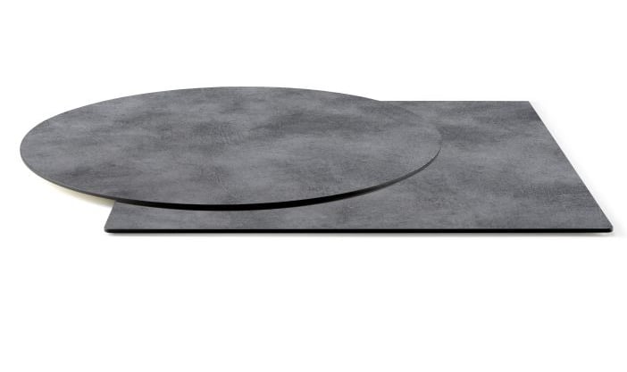 Laminated top in cement HPL characterized by a material of excellent quality and easy to maintain and clean, suitable for indoor and outdoor use, which is well suited to different contract contexts.