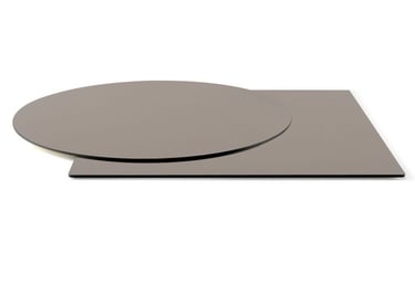 Laminated top in dove grey HPL characterized by a material of excellent quality and easy to maintain and clean, suitable for indoor and outdoor use, which is well suited to different contract contexts.