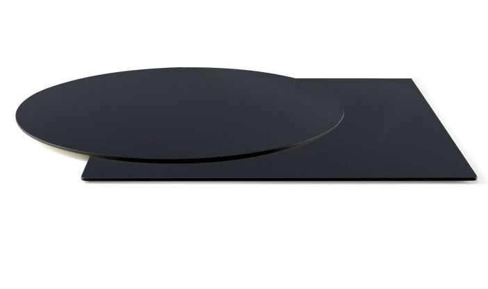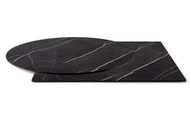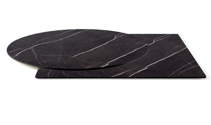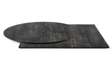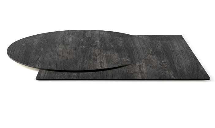 Laminated top in black HPL characterized by a material of excellent quality and easy to maintain and clean, suitable for indoor and outdoor use, which is well suited to different contract contexts.