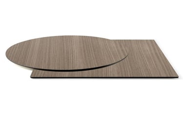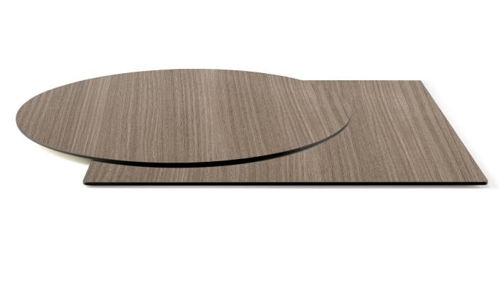 Laminated top in toronto elm HPL characterized by a material of excellent quality and easy to maintain and clean, suitable for indoor and outdoor use, which is well suited to different contract contexts.