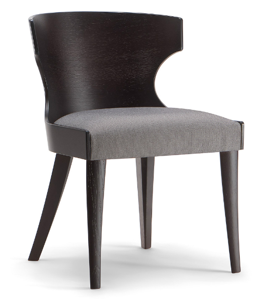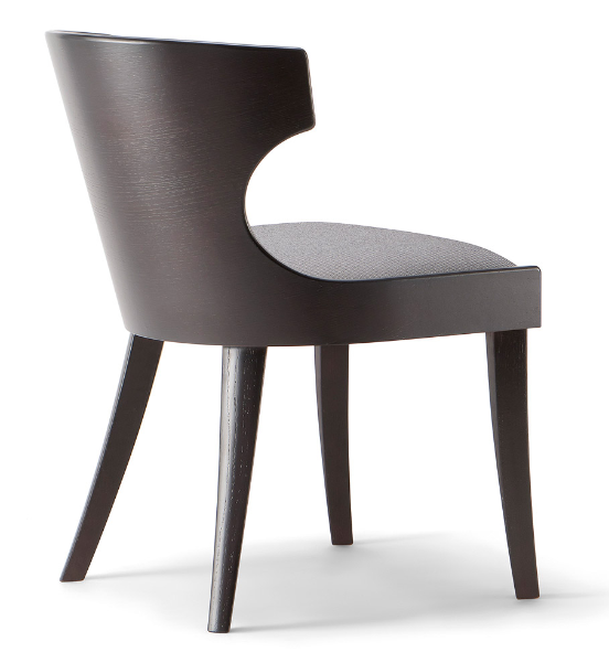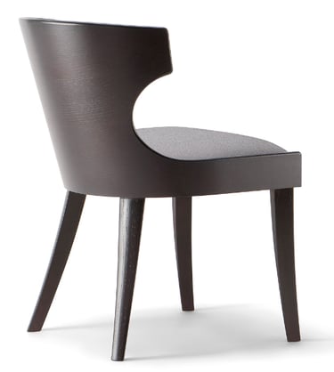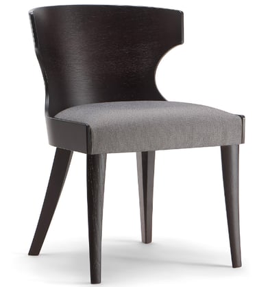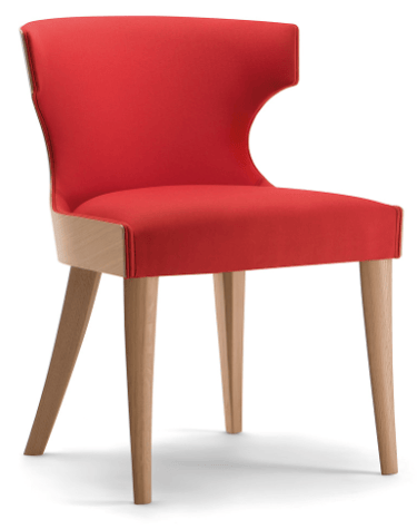 The curved plywood shell with its original design characterizes a vast range of seats of the Lauren collection. Essential and simple in its lines, this upholstered side chair is a perfect solution for contract use. The light wooden shell makes the seat comfortable and cozy. The base is made of solid wood, available in different colours.
