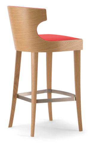 The curved plywood shell with its original design characterizes a vast range of seats of the Lauren collection. Essential and simple in its lines, this barstool is a perfect solution for contract use. The light wooden shell makes the seat comfortable and cozy. The base is made of solid wood, available in different colours.