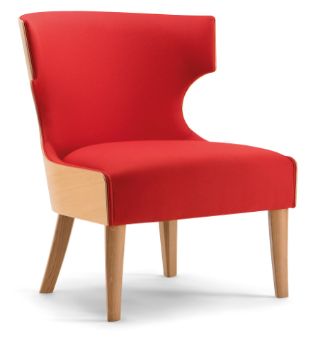 The curved plywood shell with its original design characterizes a vast range of seats of the Lauren collection. Essential and simple in its lines, this lounge chair is a perfect solution for contract use. The light wooden shell makes the seat comfortable and cozy. The base is made of solid wood, available in different colours.