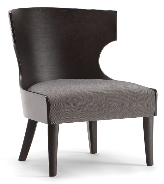 The curved plywood shell with its original design characterizes a vast range of seats of the Lauren collection. Essential and simple in its lines, this lounge chair is a perfect solution for contract use. The light wooden shell makes the seat comfortable and cozy. The base is made of solid wood, available in different colors.