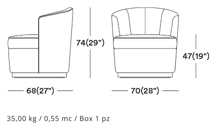 The Macrì lounge chair's backrest wraps delicately around the seat. The solid frame tapers towards the base to where it stands on a swivelling pedestal. With a wide selection of fabrics and wood finishes, the Macrì lounge chair could be customised to match every venue at its best.