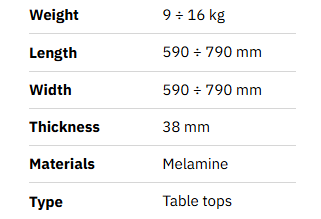 Resistent revested chipboard top with anti-scratch cover. Perfect for HoReCa and contract market, it’s an elegant and functional table top for restaurant, bar and hotel hall.