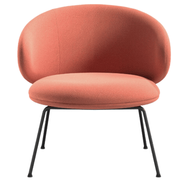 Upholstered lounge armchair with plywood structure and flame-retardant foams and coverings.