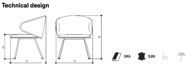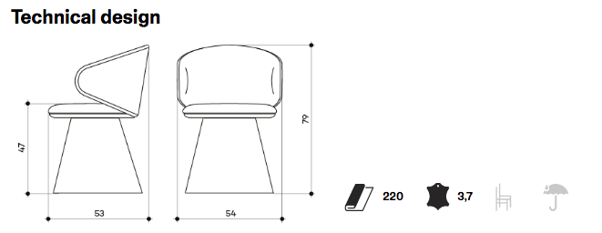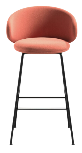 4-Legs stool with steel frame, beech plywood seat and backrest with flame-retardant polyurethane foam, upholstered.