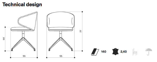 Swivel armchair with 4-rays base made of polished or painted aluminum, beech plywood seat and backrest with flame-retardant polyurethane foam, upholstered.