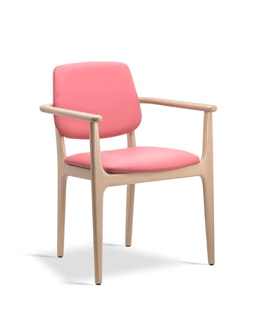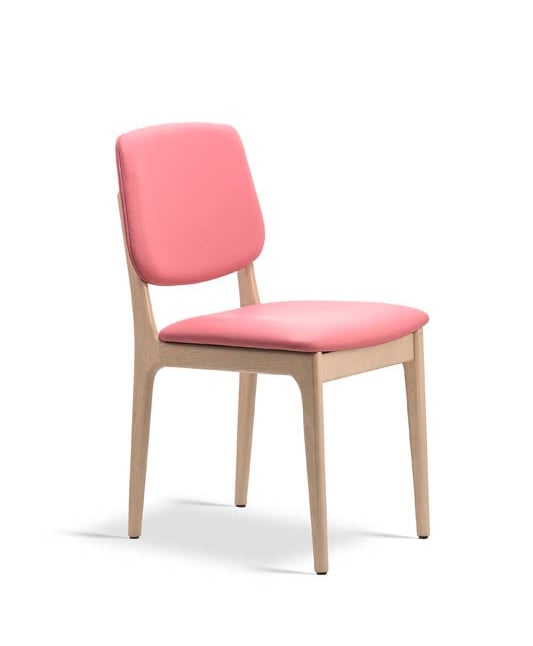 Molli chair and armchair is a collection created for many different environments thanks to its adaptable style. Elegant and robust, it furnishes restaurants and hotels with taste. Handy and practical, its shapes make it easy to place it even in residences for the elderly. Molli is available in all finishes and the backrest and seat can be upholstered in two different fabrics for maximum customization.