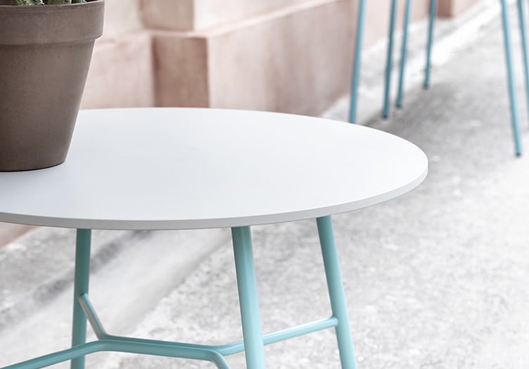 Whether it’s square, rectangular, oval or round, Nino Little Table comes in several shapes, sizes and finishes. The painted metal base in standard or special colours can be combined with a HPL, marble or glass ceramic top for living spaces in the home and lounge areas in offices and hotels. Numerous options mean that coffee tables of different heights and sizes can be placed in the same setting for creative compositions, even outdoors.