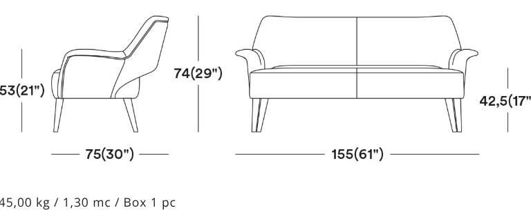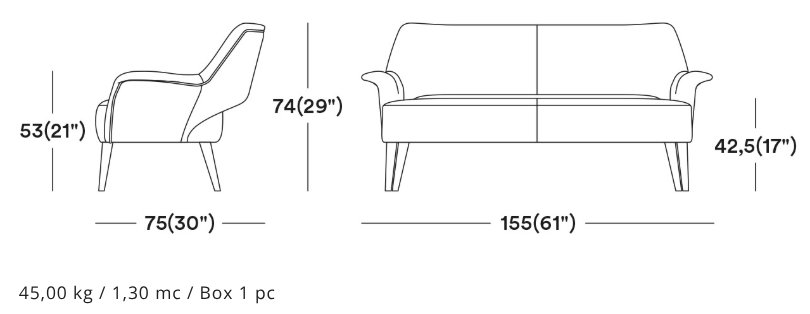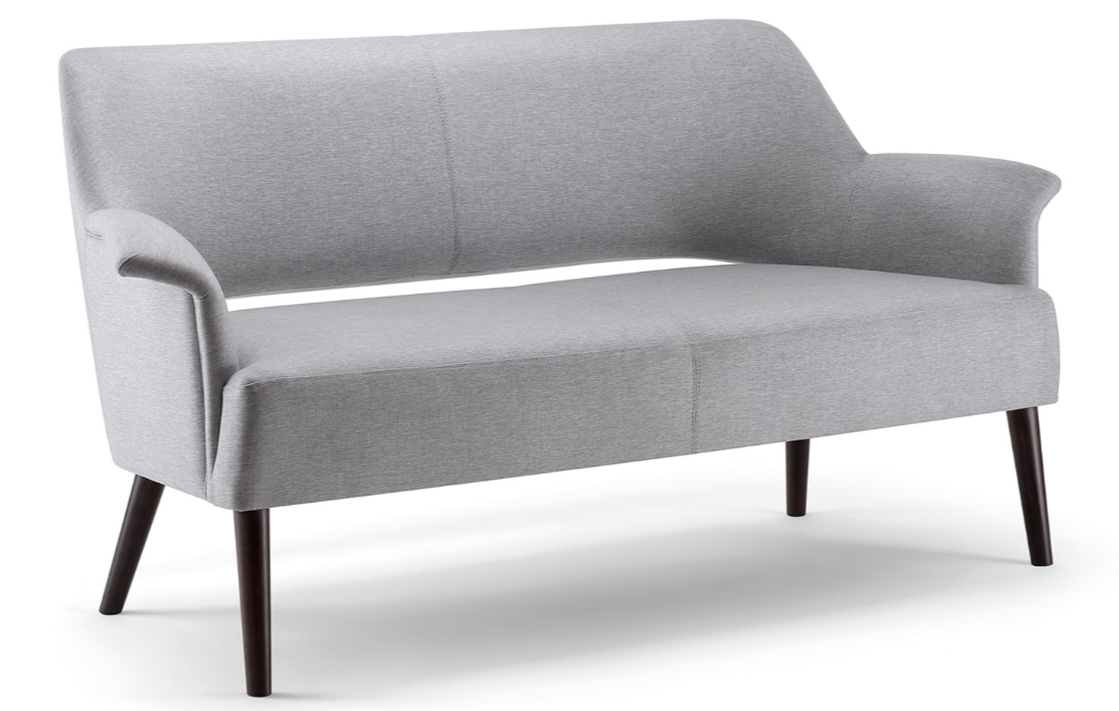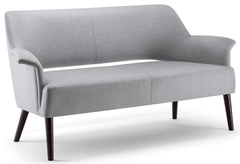 A design based on precise proportions, high quality and attention to detail. This sofa is constructed from solid beech wood, frame with elegant armrests for a highly durable design, suitable for all contract use. The wide range of fabrics available and the different colours of wood make the product customizable for any environment.