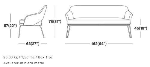 A design based on precise proportions, high quality and attention to detail. This sofa is constructed with a solid metal frame, for a highly durable design that is suitable for all contract use. The wide range of fabrics available make the product customizable for any environment.