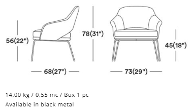 A design based on precise proportions, high quality and attention to detail. This lounge chair is constructed with a solid metal frame, for a highly durable design that is suitable for all contract use. The wide range of fabrics available make the product customizable for any environment.