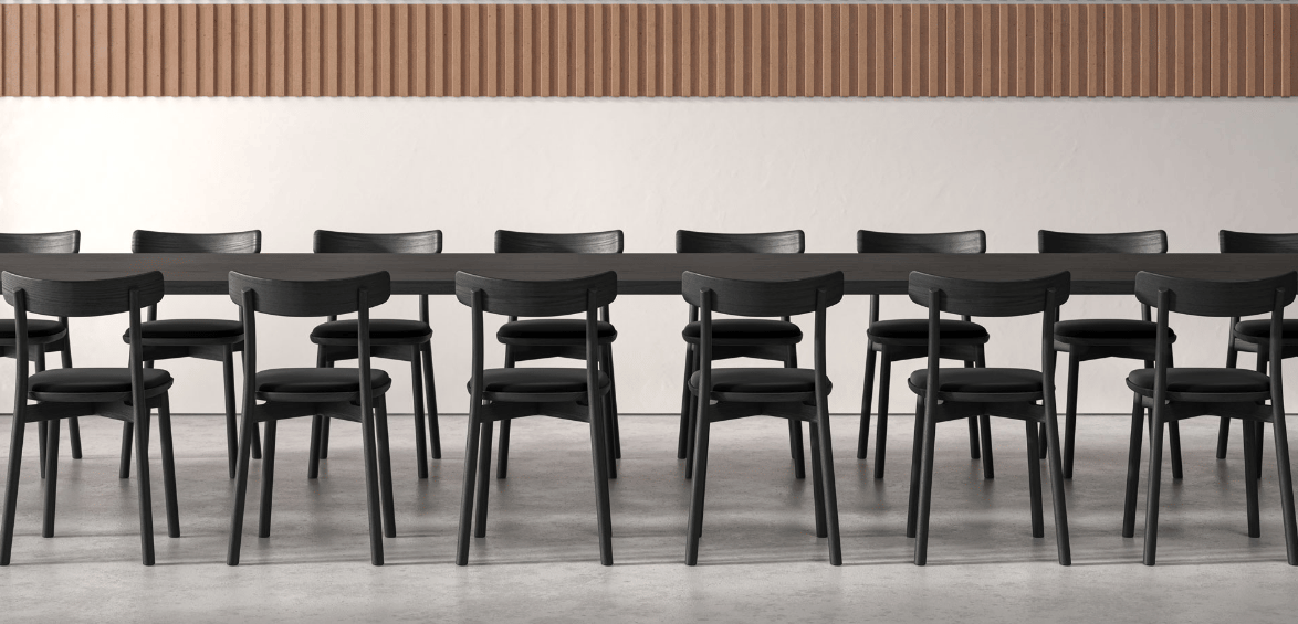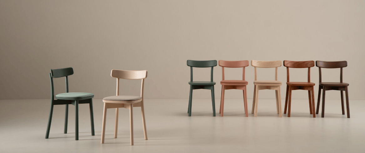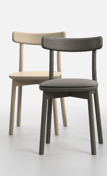 Painted or open-pore lacquered Solid ash chair. Accesory available: Upholstered fixed cushion.