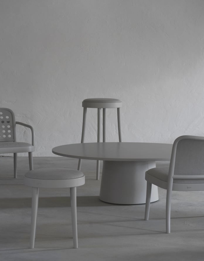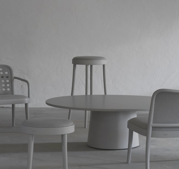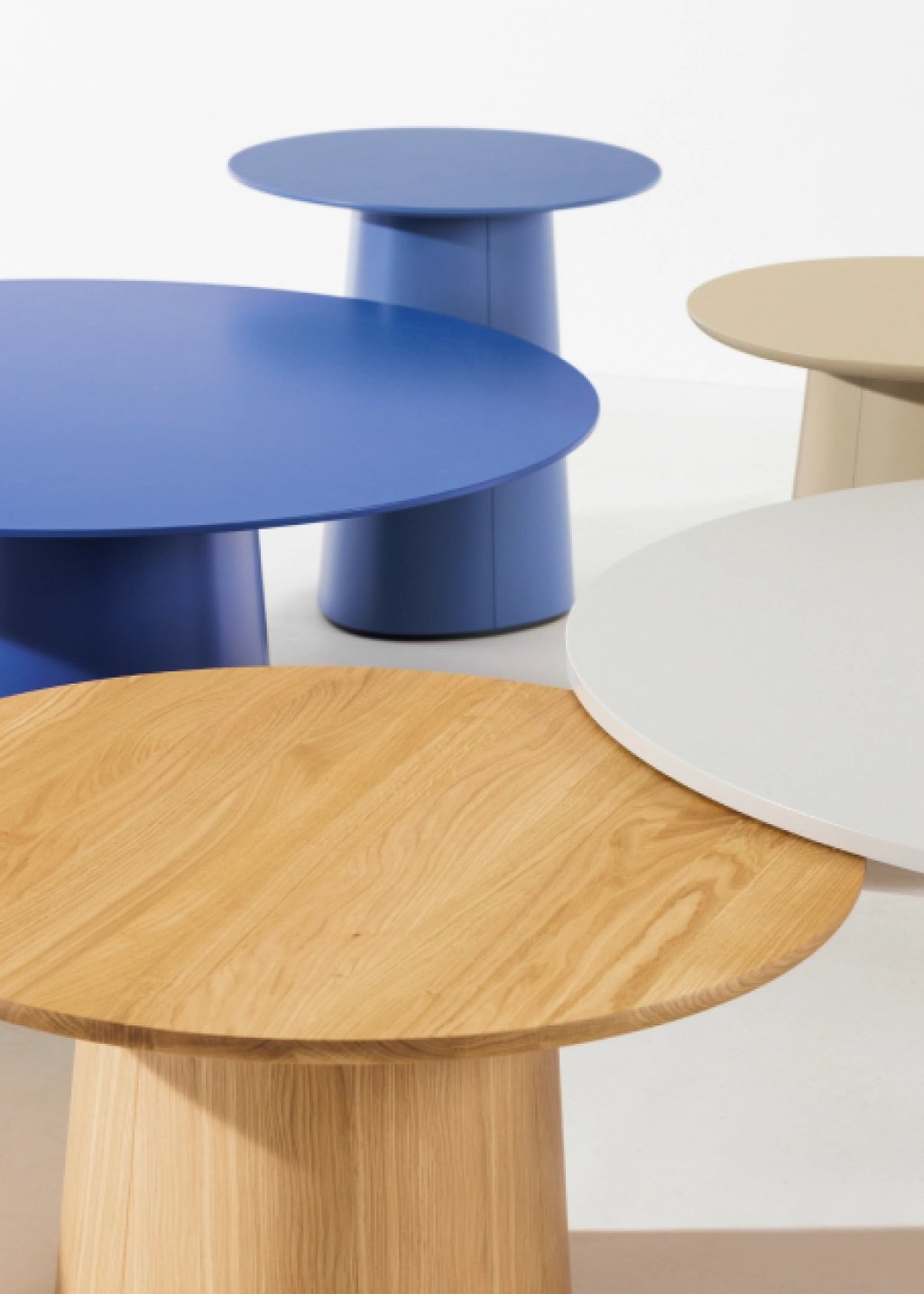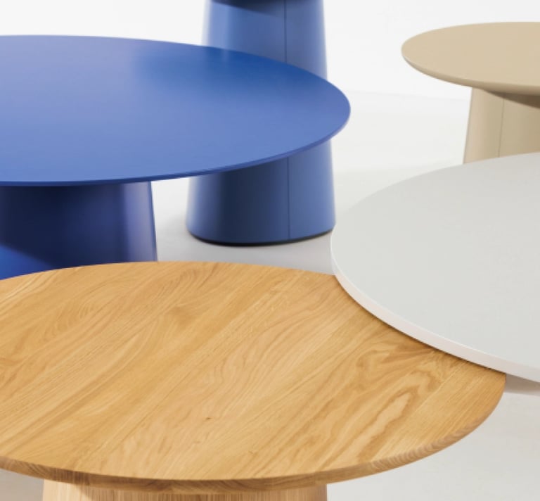 Modularity system of tables from German design studio kaschkasch. When transformed into a coffee table, the P.O.V. table typology expands the collection’s uses to living rooms and lounge zones. The organically shaped leg and range of colour finish options allows the model either to stand out visually or match the interior.