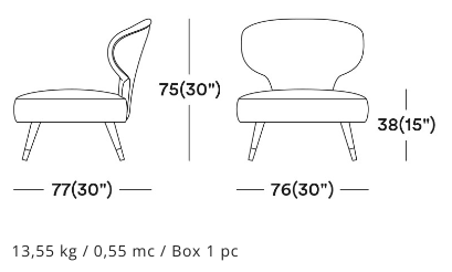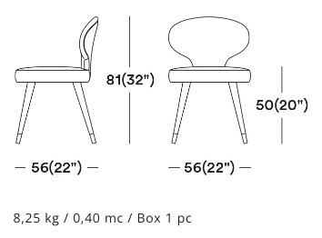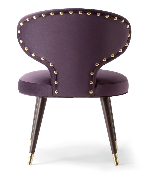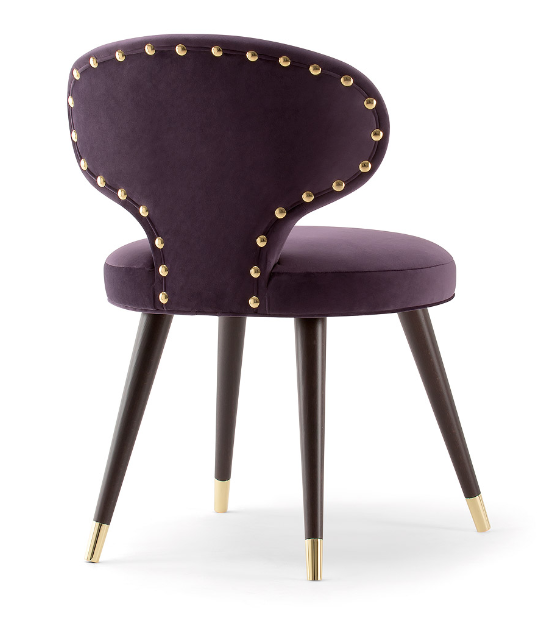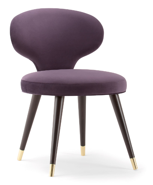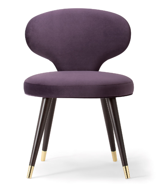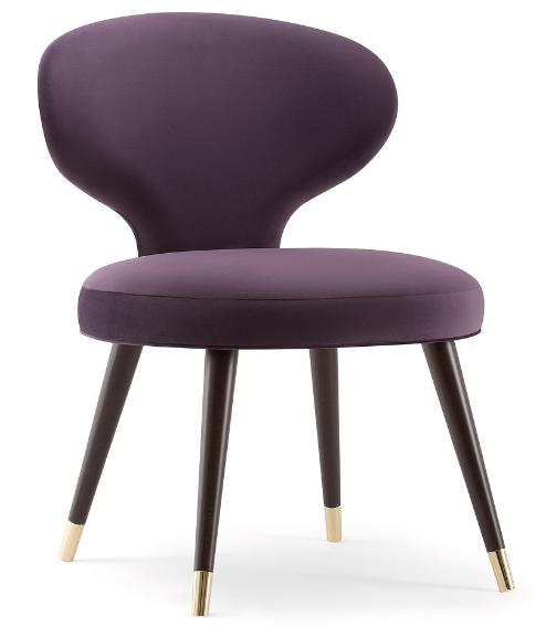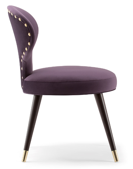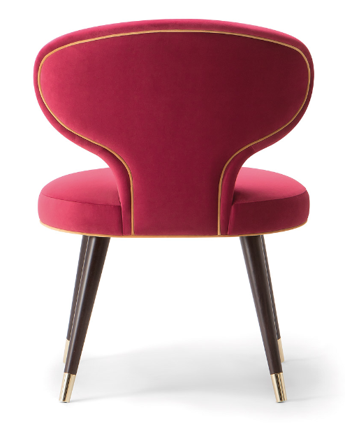 The Rivale collection consists of a range of armchairs and sofas which explores a new world of original and embracing sensations. The distinctive backrest forms a glamorous silhouette in the Rivale side chair. Set upon four conical wooden legs with stylish metal feet, the Rivale side chair is the perfect chair for trendy restaurants, hotels and bars. Upholster the side chair choosing from a high-quality selection of fabrics, wood stains and metal finishings.