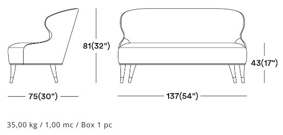 The Rivale collection consists of a range of armchairs and sofas which explores a new world of original and embracing sensations. With a generous seat and elegant curvature, the Rivale sofa is a comfortable and glamourous choice for high-end hotels and boutiques. Sanding strong on stylish wooden legs with metal slipper cups, The Rivale is available in a wide range of both high-quality fabrics and wood stains.