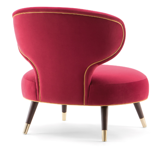 The Rivale collection consists of a range of armchairs and sofas which explores a new world of original and embracing sensations. Great for boutique hotel lounges and furnishing up market cocktail bars, the Rivale lounge chair creates comfort with style. Four solid wooden legs feature trendy metal slipper cups, available in a range of finishes. Choose the fabrics, the wood stains and the metal cups from a wide selection of high-quality materials.