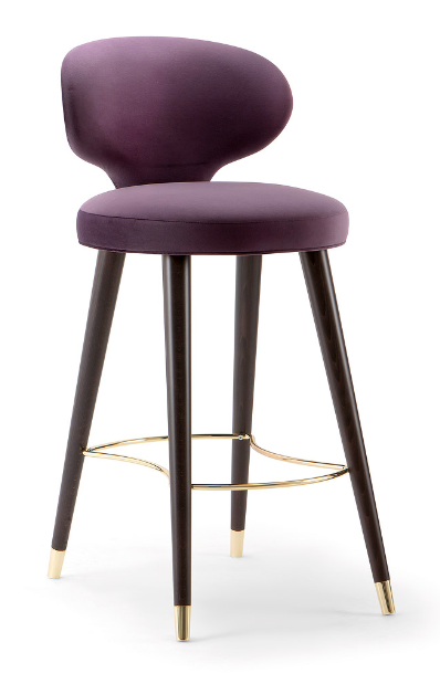 The Rivale collection consists of a range of armchairs and sofas which explores a new world of original and embracing sensations. The Rivale bar stool is an easy choice for furnishing luxurious hotel and cocktail bars. Customize the Rivale bar stool by choosing from a wide selection of fabrics, wood stains and metal finishings.