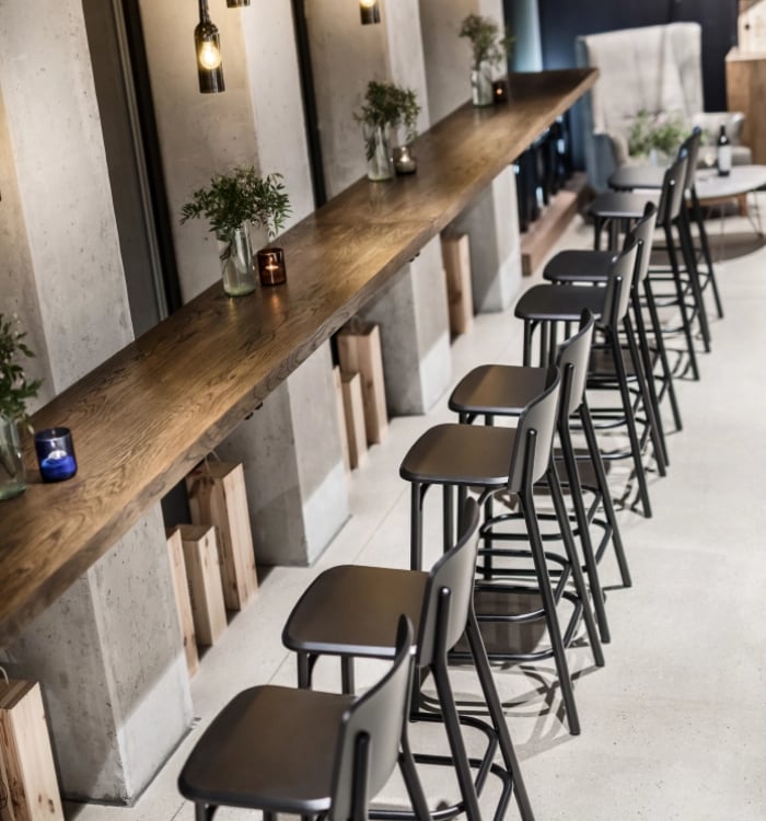 We were the first in the world to split a single piece of wood lengthwise and bend it in two directions to support a comfortable bar stool.