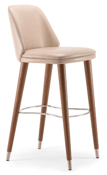 Beginning with a slimline seat and backrest and ending with metal slipper cups, the Twilly barstool has a classic form in keeping with current trends. The wooden legs feature a metal footrest customisable choosing from a wide range of metal finishings. The huge offer of fabrics and wood stains will make this stool a perfect piece for every venue.