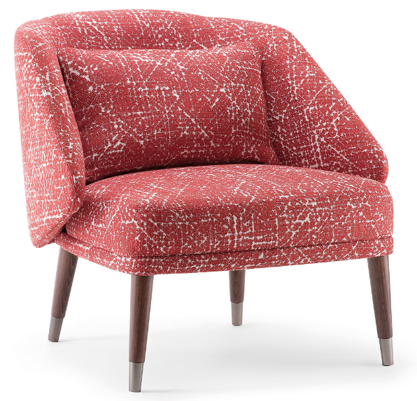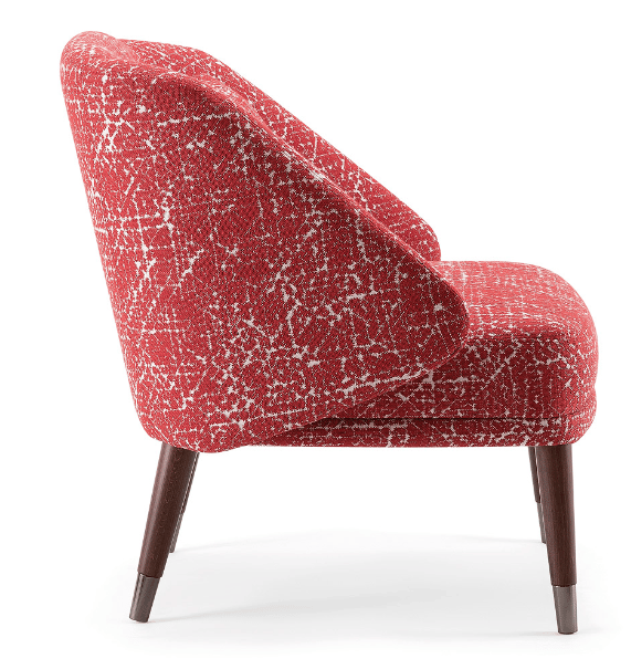 Comfy and cozy collection with warm and welcoming personality suitable for every environment. The Twilly lounge chair is formed of two elements which come together in the back. The seat, in a square profile is padded for comfort, and set upon four conical wooden legs with metal slipper cups. The Twilly's backrest wraps around the seat, creating a chair which is as comfortable as it is quirky. The wide selection of both high quality fabrics and wood stains make this lounge chair highly customisable to match every venue at its best.
