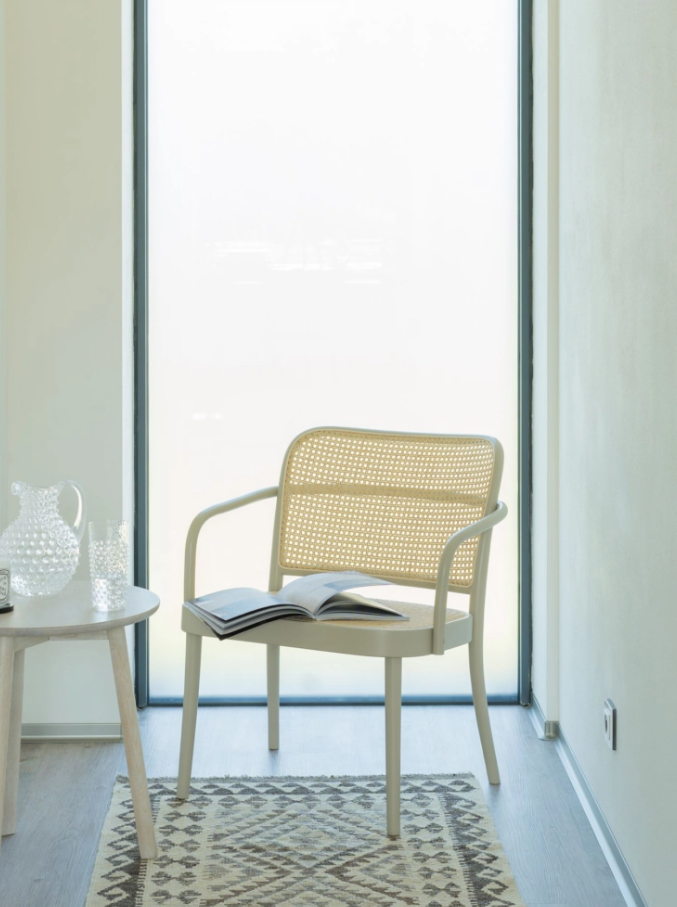 Good design never grows old. This lounge chair was first designed by Austrian Josef Hoffmann nearly 100 years ago. He created an elegant bar chair with bentwood parts, usually combined with a cane weave to ensure an extremely comfortable sitting position.