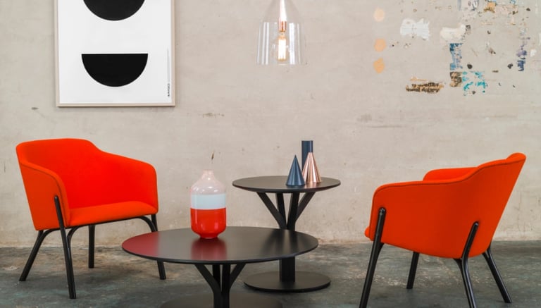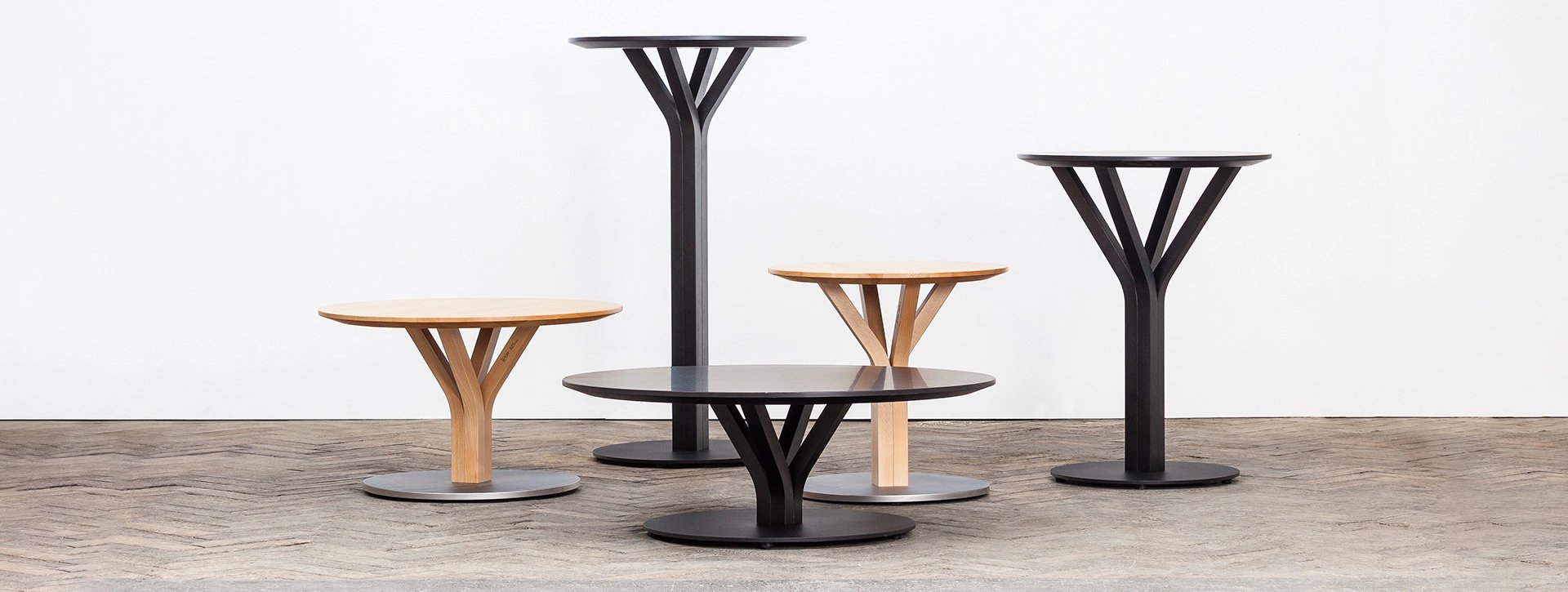 Arik Levy designed this table with its unique, flower-like wooden pedestal – a completely unconventional idea that will instantly catch your eye. Levy used four pieces of wood that branch outwards, like a flower in bloom. This table is a good match for the Split collection, as it is designed on a similar principle.